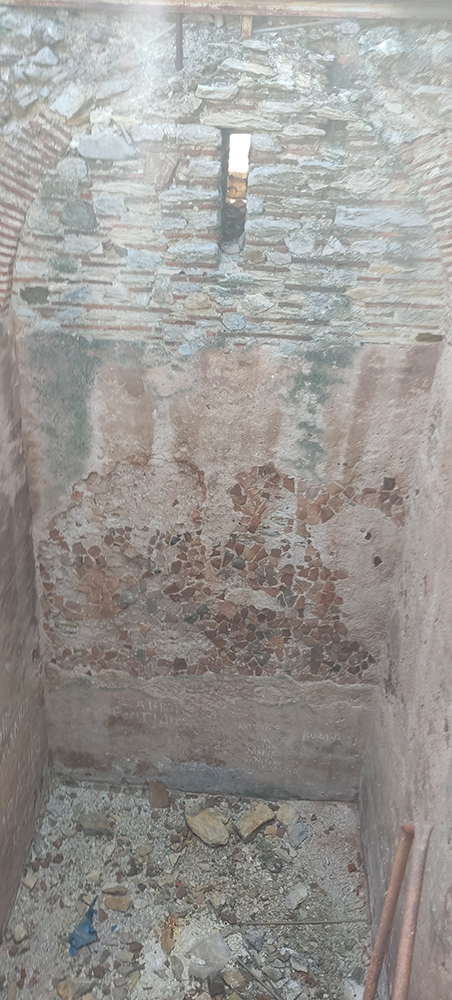 Το παρεκκλήσιο βρισκόταν σε όροφο του πύργου. Κατά τη διάρκεια ανασκαφών εντοπίστηκαν σπαράγματα τοιχογραφιών. Σε αυτά ανήκει και μικρό τμήμα με το μονόγραμμα του Παλαιολόγου, το οποίο προέρχεται από την κτητορική επιγραφή του Πύργου και έχει φυλακτικό χαρακτήρα.