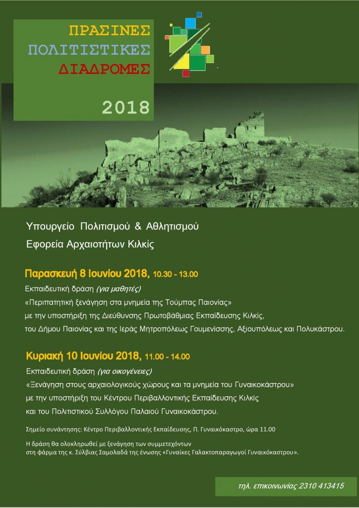 Την Κυριακή 10 Ιουνίου 2018, 11.00π.μ.-14.00μ.μ., στο πλαίσιο του καθιερωμένου ετήσιου εορτασμού των Πράσινων Πολιτιστικών